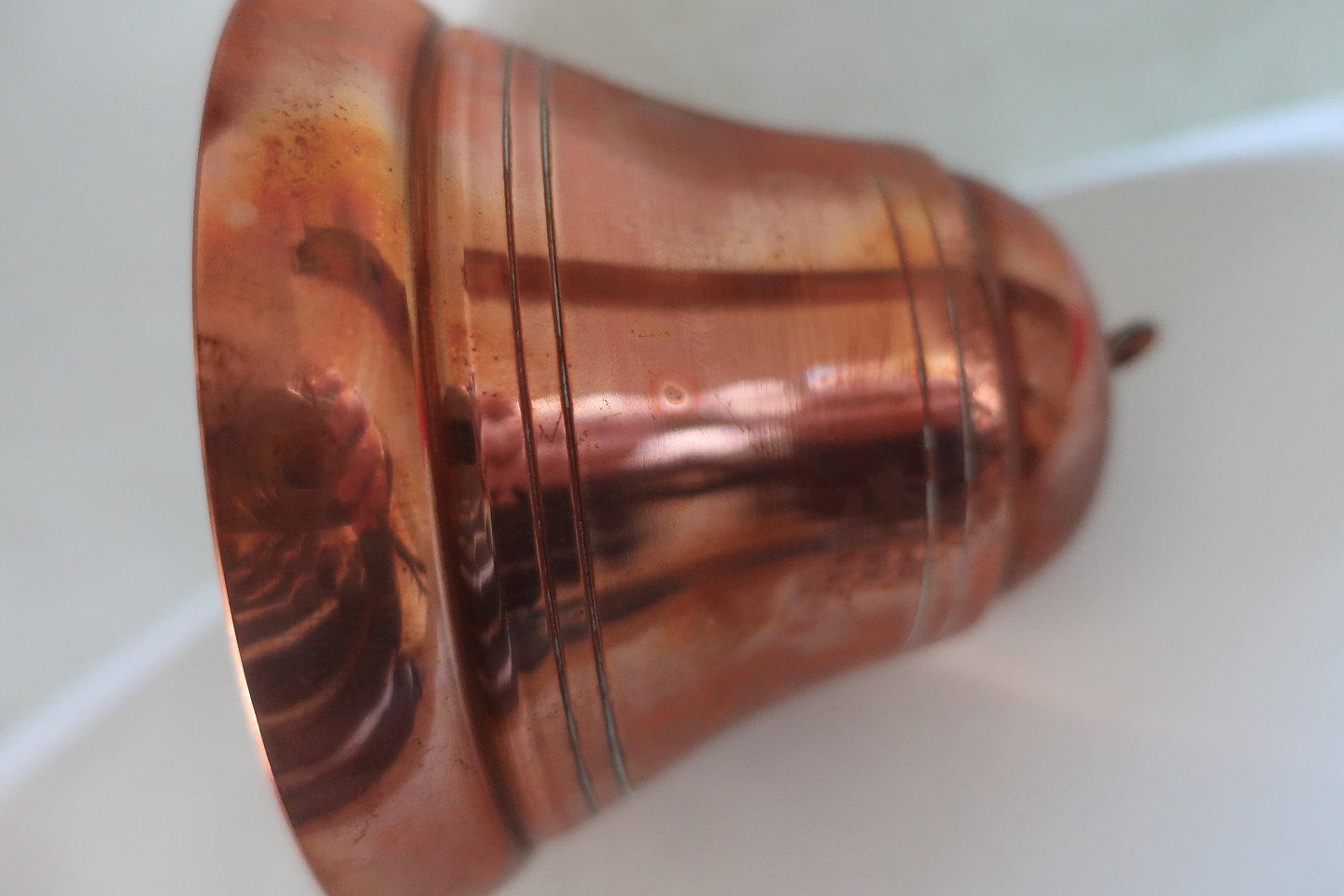 Smuk, gammel klokke af kobber, let udsmykket Smuk klang H: 8cm uden krog Fra 1900-tallet Flot stand Se også vore andre annoncer med klokker Varenr.: KL1005