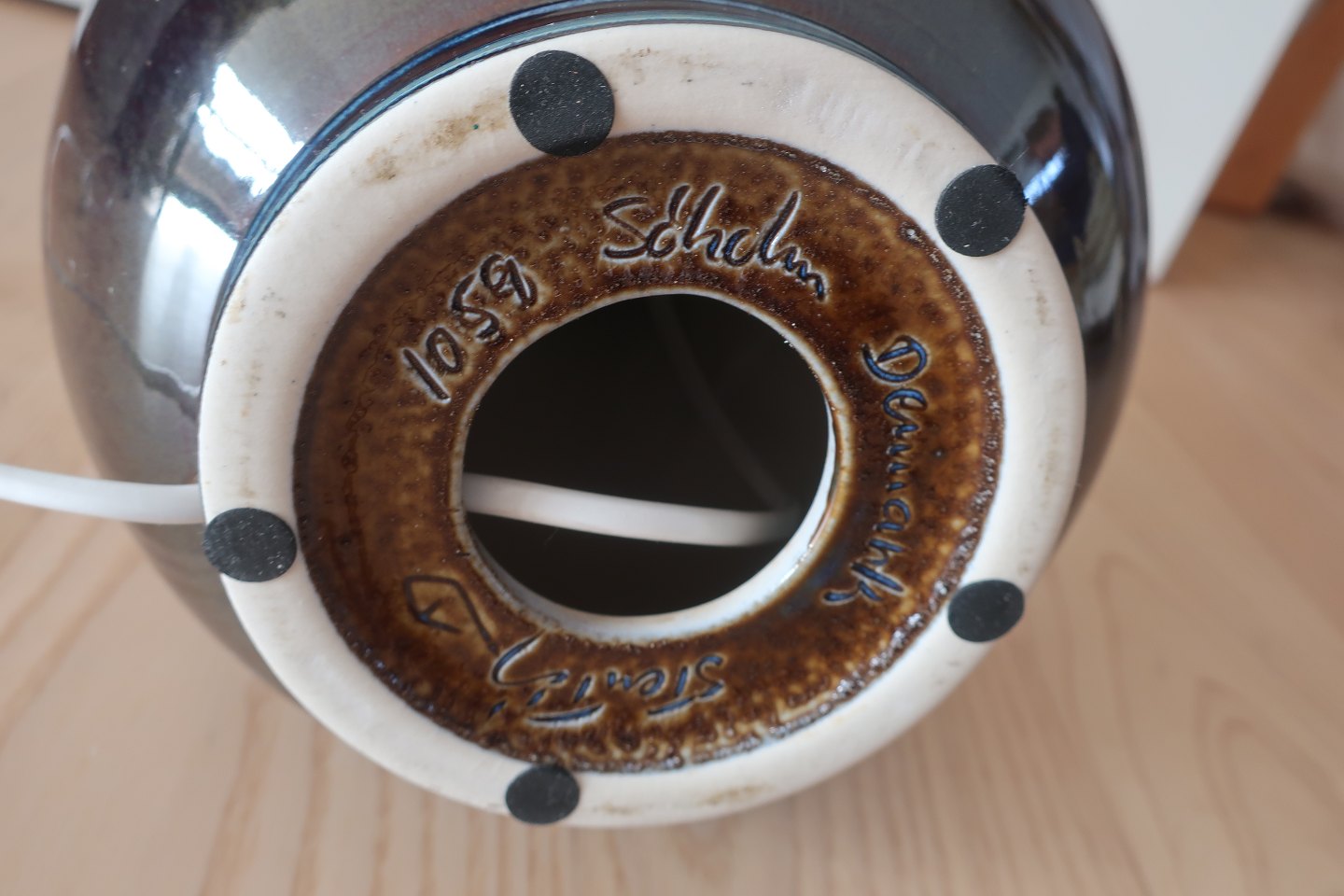Beautiful tabel lamp made of stoneware Søholm stoneware, Bornholm, Denmark H: 29cm without socket Stamp 1059 In a good condition Articleno.: KL1005