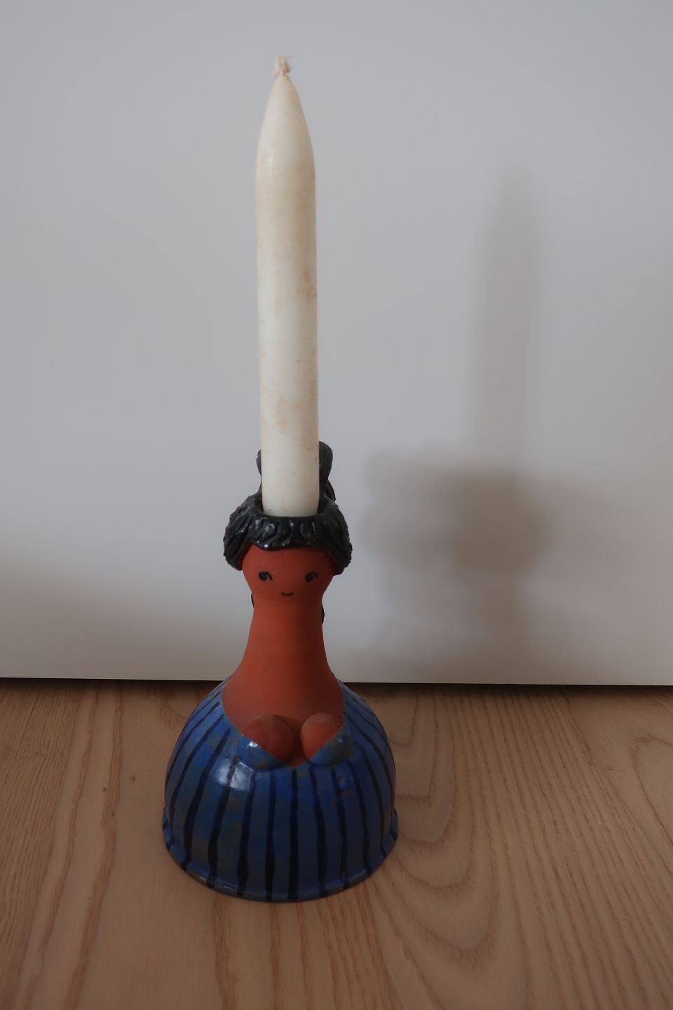 Uniq candlestick pottery made by Hildegon, the well known potter from the island Als in Southern Jutland.