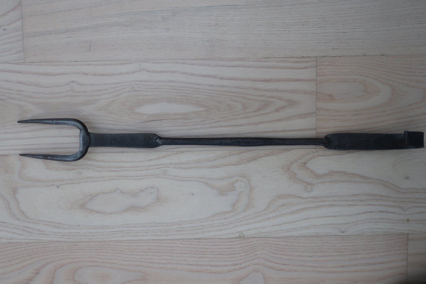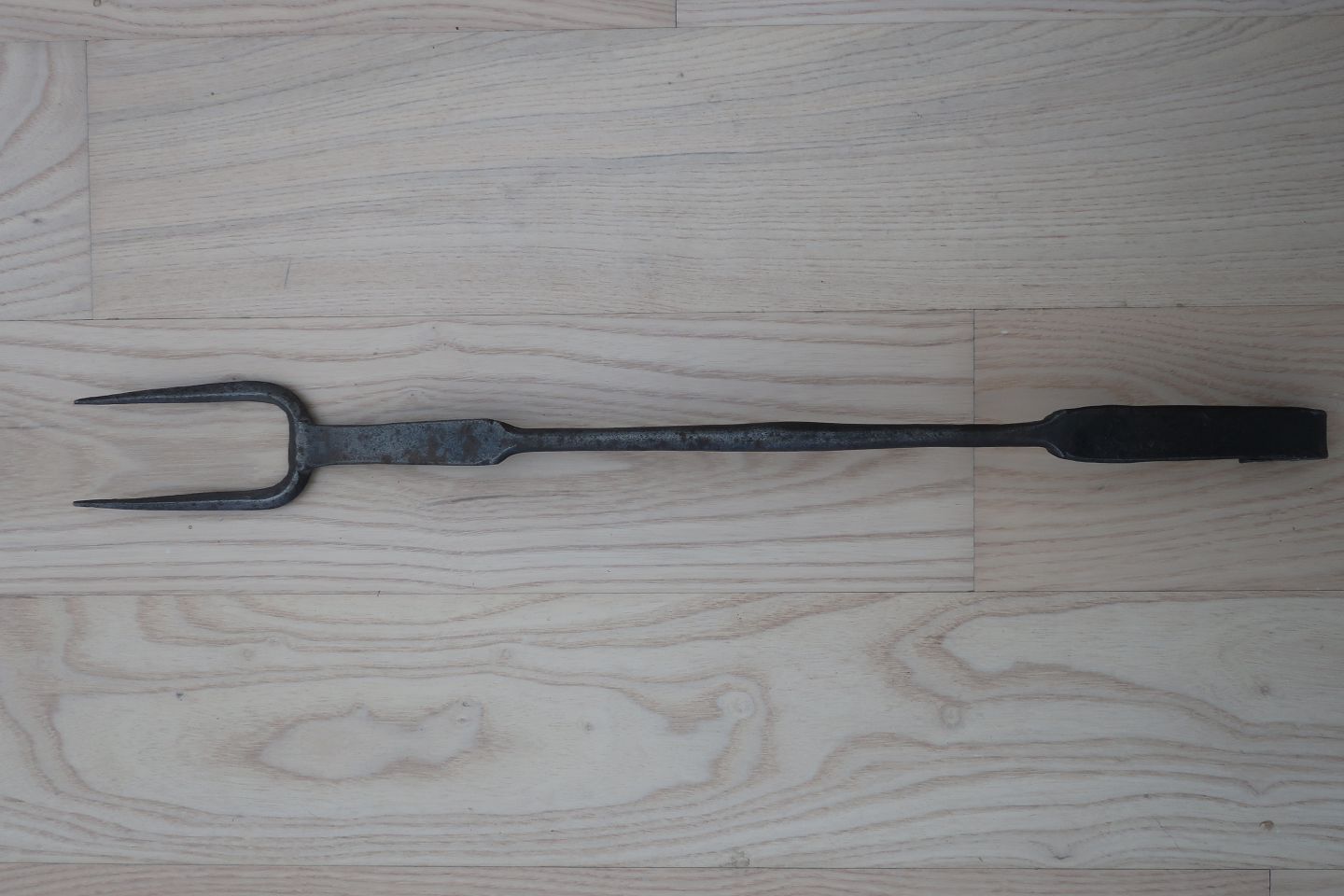 An antique fork Handmade of iron Perfect by the grill and ekstra good by the fire L: 58,5cm About 1850 In a good condition Articleno.: 2-52521