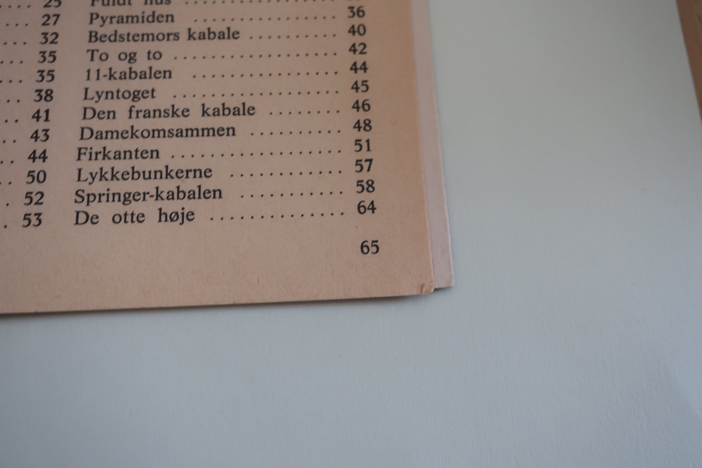 Kabalelæggeren 47 forskellige kabaler 1971 Nr. 4 i serien: Spil og gæt bøger Fogtdal Forlag Sideantal: 65 God stand Varenr.: KM1005