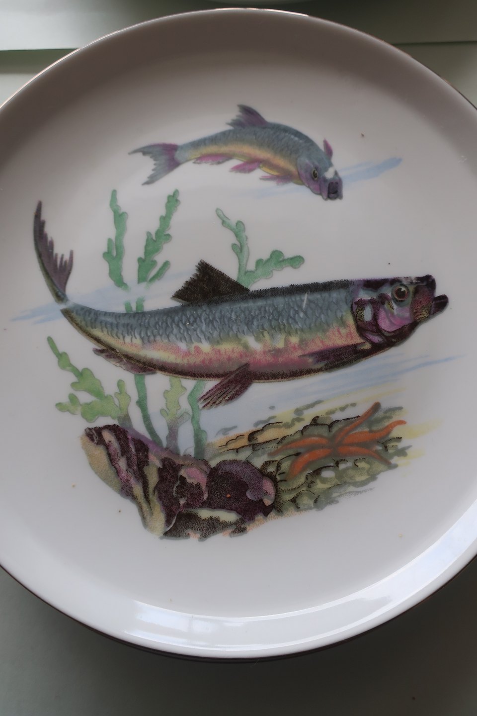 Vintage Plates 1 sæt med 12 stk with 6 motives = 2 motiver of each Diam: 17cm Made in Germany - Colditz In a good condition Articleno.: KM1005